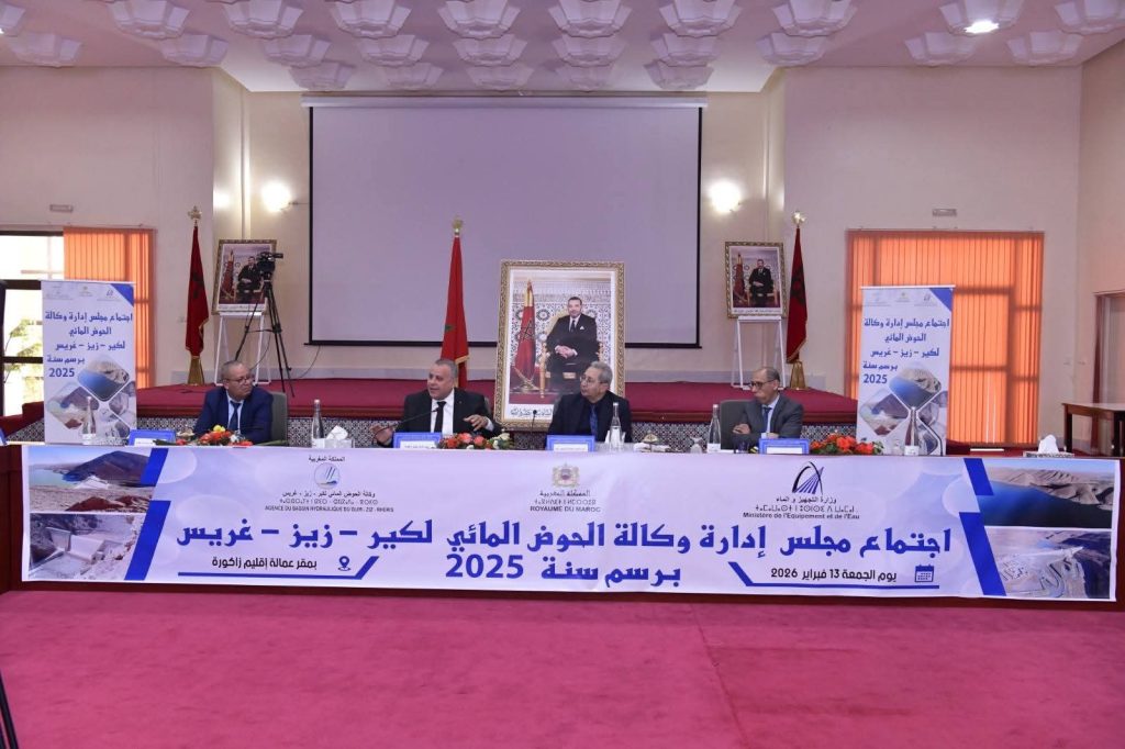 انعقد يوم الجمعة 13 فبراير 2026 بمدينة زاكورة اجتماع مجلس إدارة وكالة الحوض المائي لكير–زيز–غريس برسم دورة سنة 2025، برئاسة السيد عبد الفتاح صاحبي، الكاتب العام لوزارة التجهيز والماء، وذلك بحضور السيد عامل إقليم زاكورة، والنائب الأول لرئيس مجلس جهة درعة-تافيلالت، ورئيس مجلس الحوض، وأعضاء المجلس الإداري٠